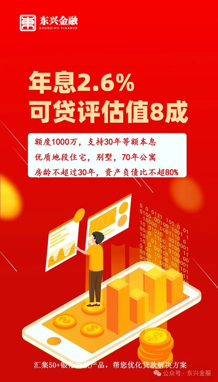 经营贷款:年利率2.6%可贷评估8成,等额本息30年还款!
